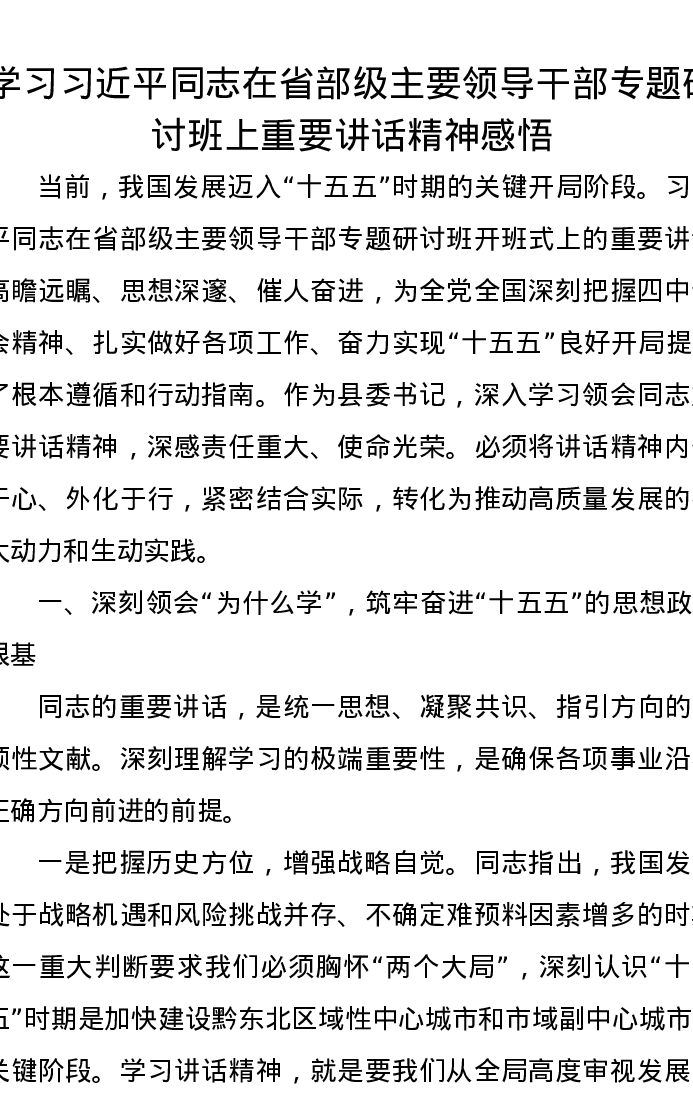 学习习近平总书记在省部级主要领导干部专题研讨班上重要讲话精神感悟