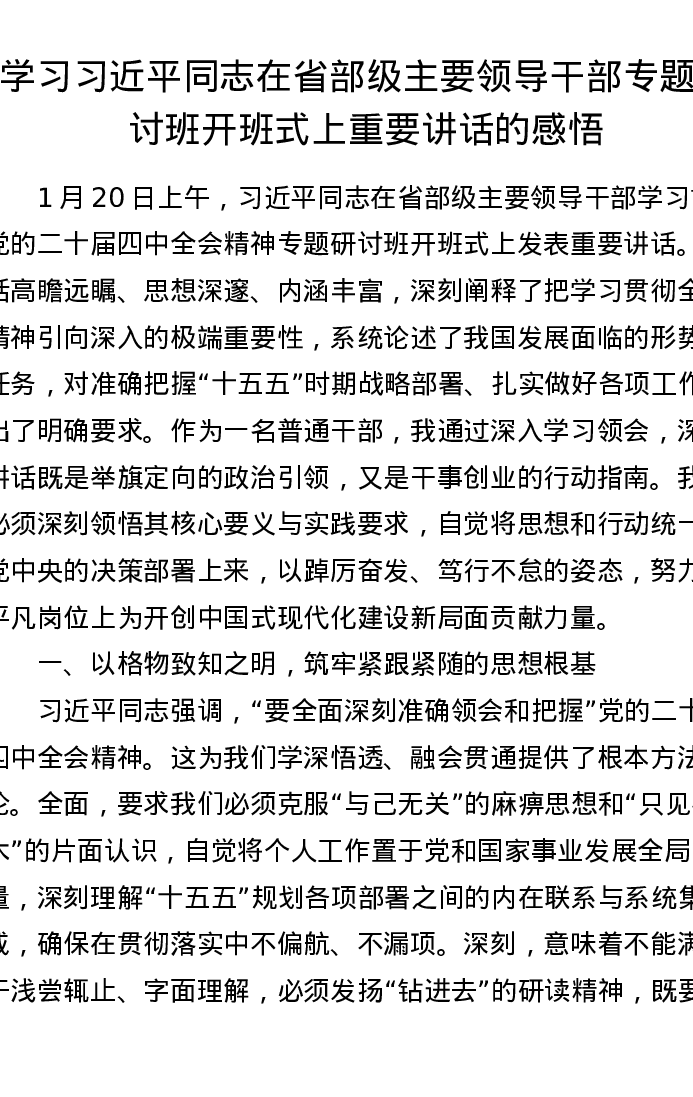 学习总书记在省部级主要领导干部专题研讨班开班式上重要讲话的感悟