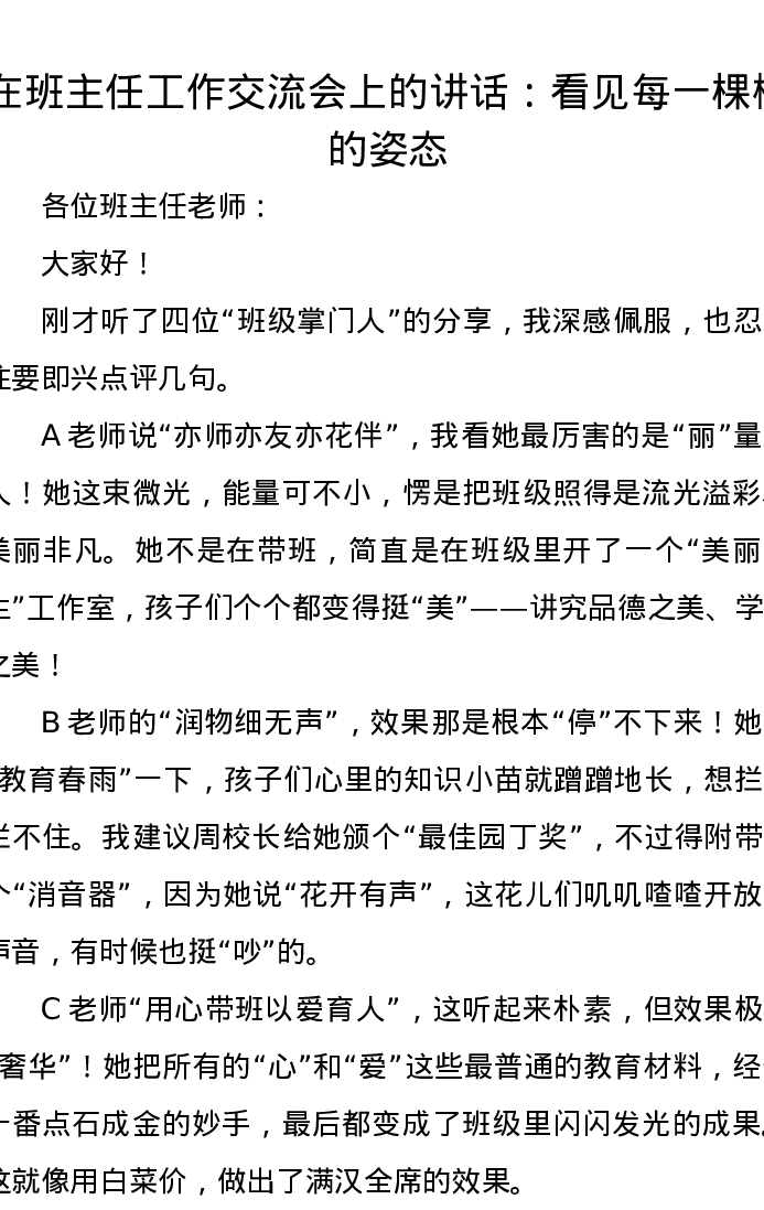 在班主任工作交流会上的讲话:看见每一棵树的姿态