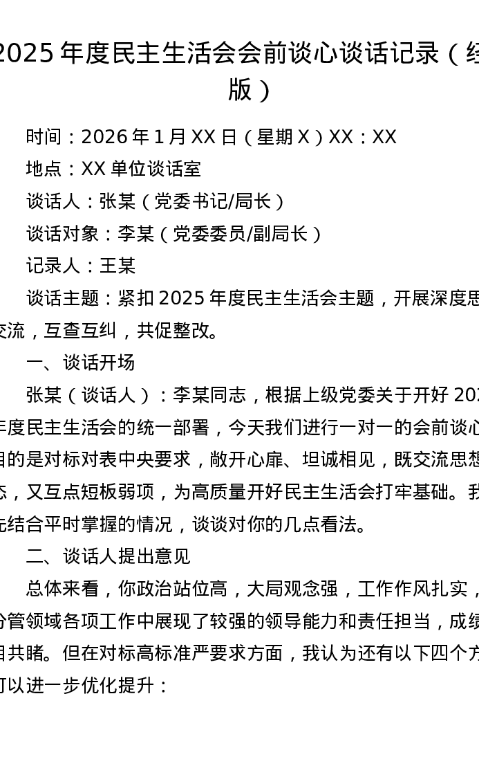 2025年度xxxxx会前谈心谈话记录(经典版)