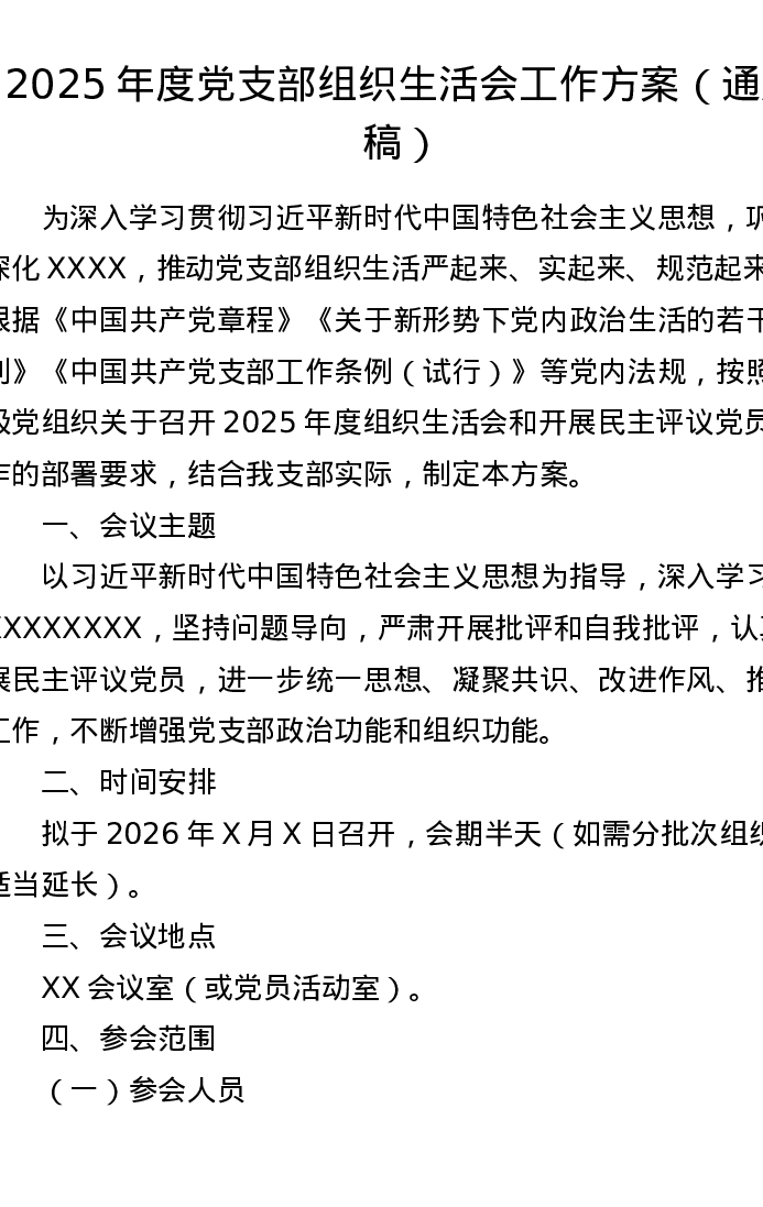 2025年度党支部组织xxx工作方案(通用稿)