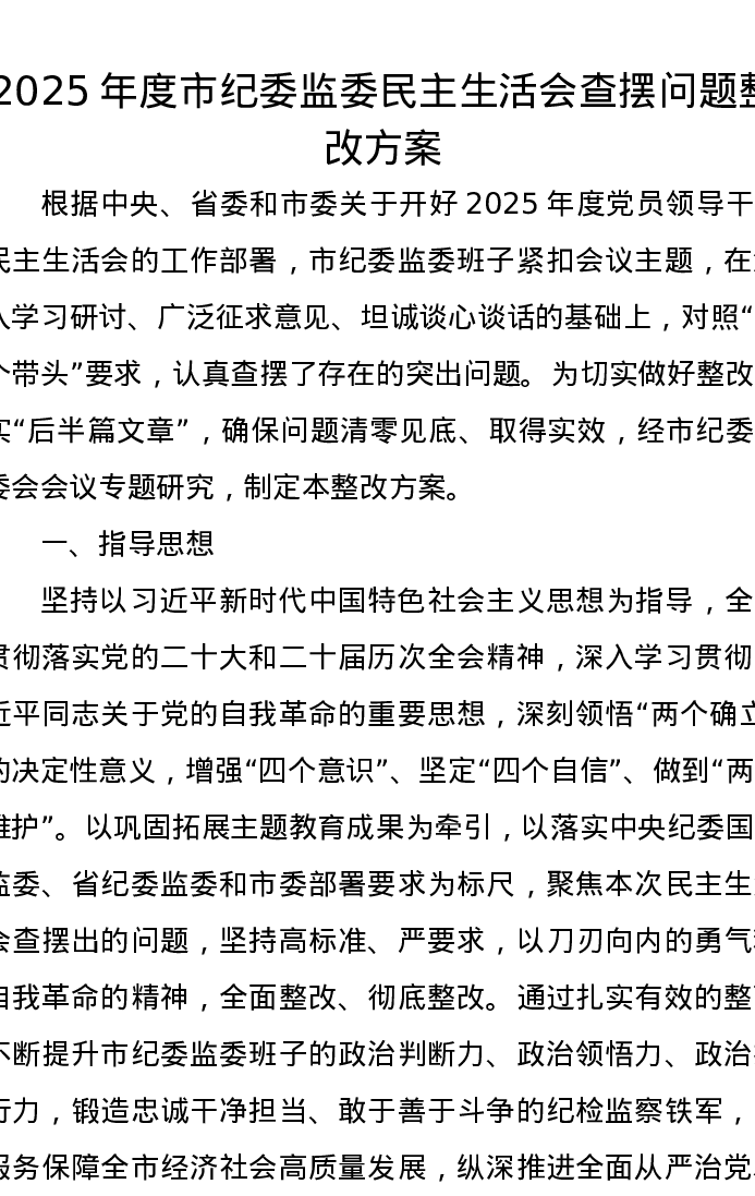 2025年度市纪委监委xxxxx查摆问题整改方案