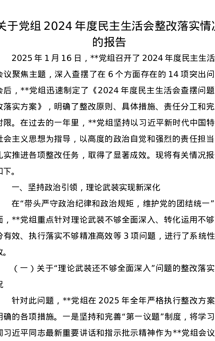 关于党组2024年度xxxxx整改落实情况的报告