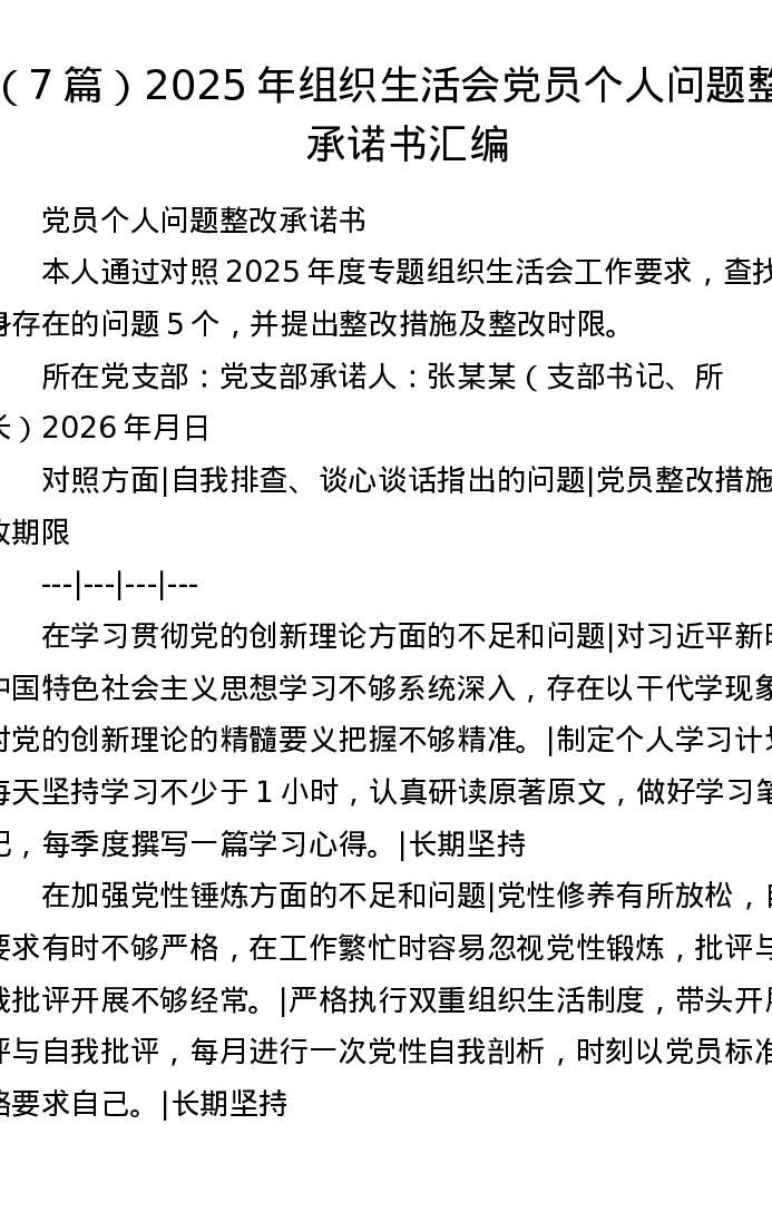 汇编:2025年组织xxx党员个人问题整改承诺书7篇