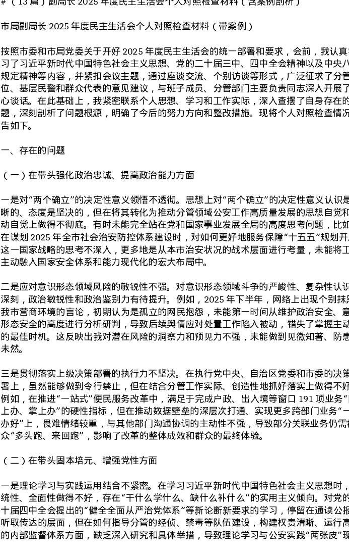 汇编:副局长2025年度xxxxx个人对照检查材料(含案例剖析)10篇