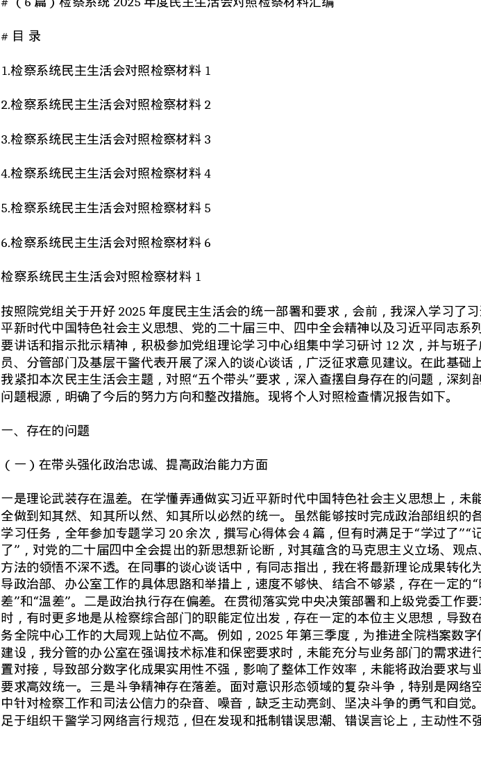 汇编:检察系统2025年度xxxxx对照检查材料6篇