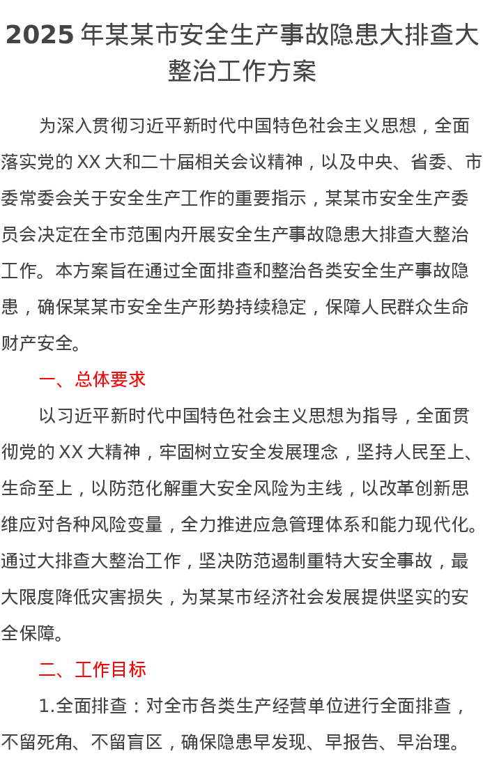 2025年某某市安全生产事故隐患大排查大整治工作方案