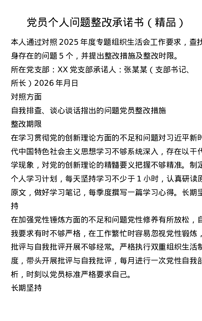 党员个人问题整改承诺书