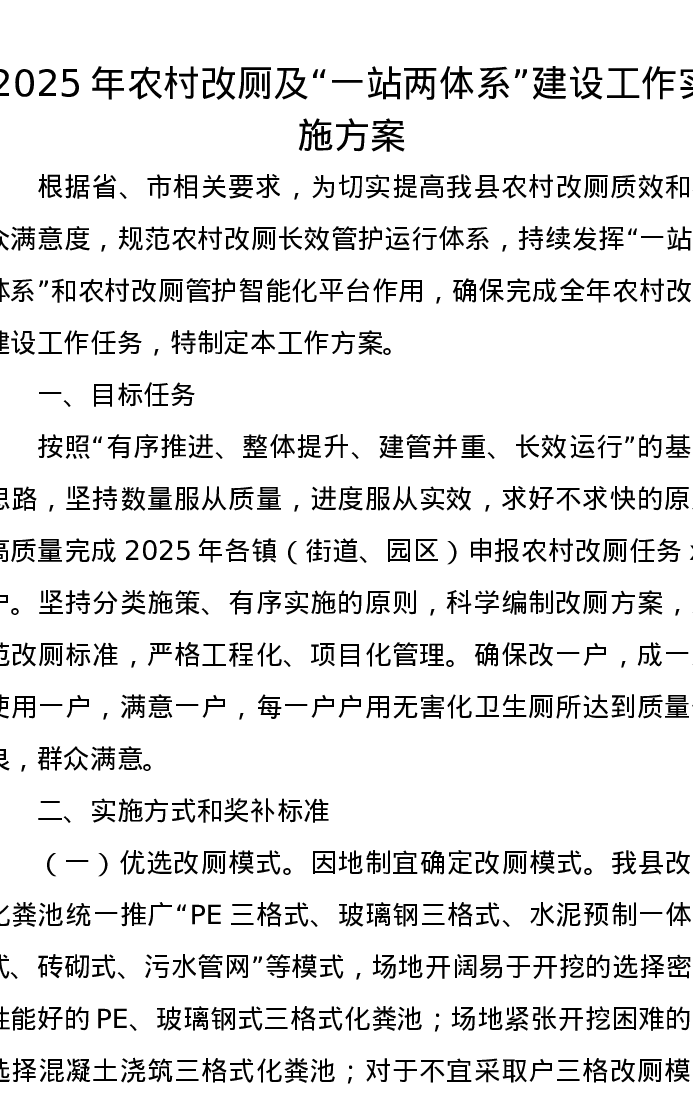 2025年农村改厕及一站两体系建设工作实施方案