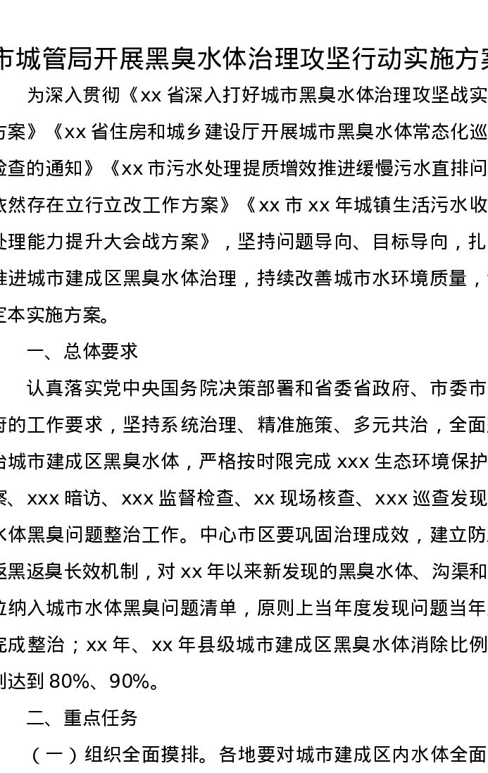 市城管局开展黑臭水体治理攻坚行动实施方案