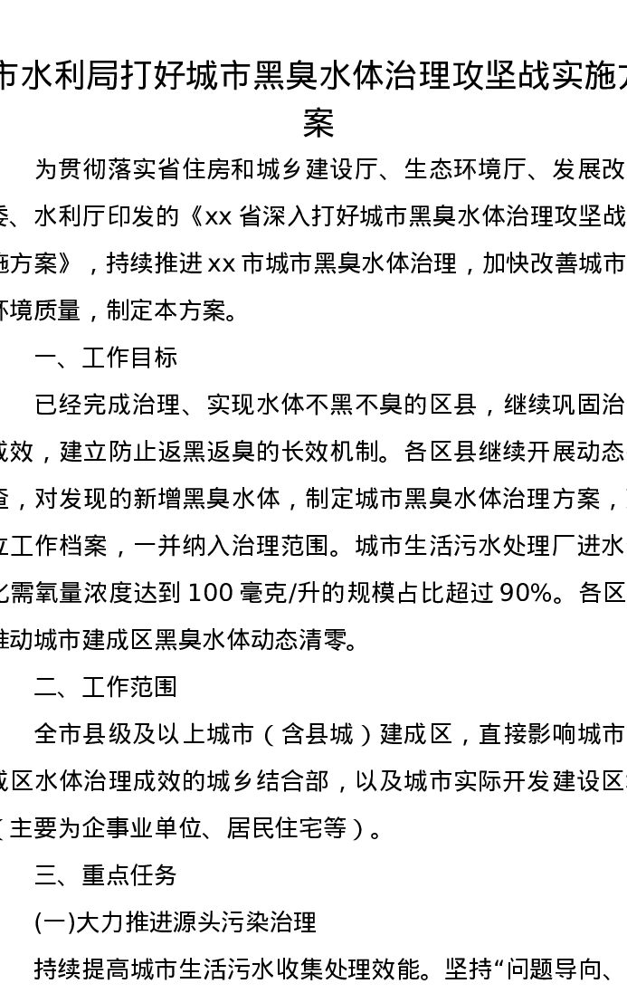 市水利局打好城市黑臭水体治理攻坚战实施方案