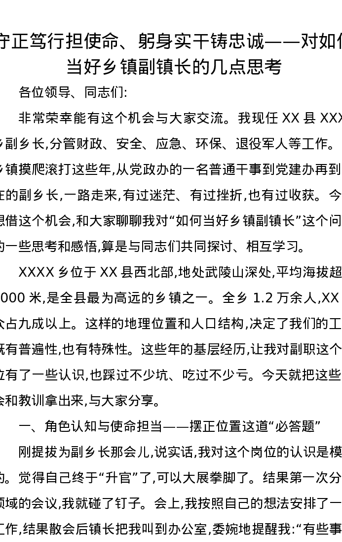 守正笃行担使命、躬身实干铸忠诚——对如何当好乡镇副镇长的几点思考