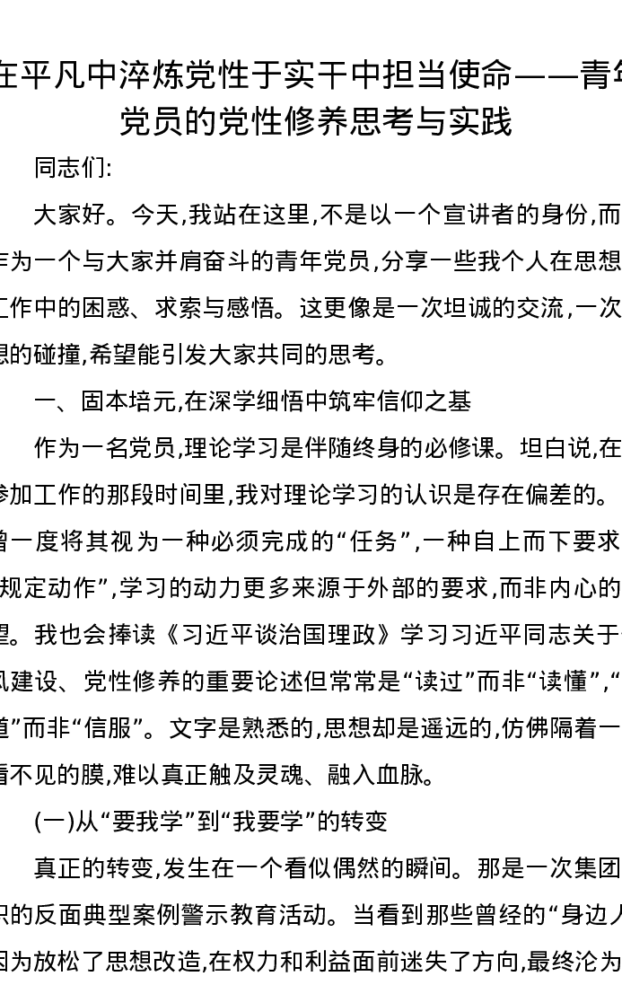 在平凡中淬炼党性于实干中担当使命——青年党员的党性修养思考与实践