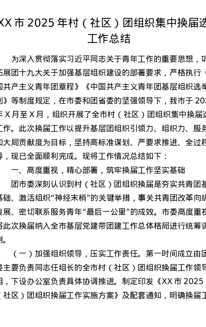 XX市2025年村(社区)团组织集中换届选举工作总结