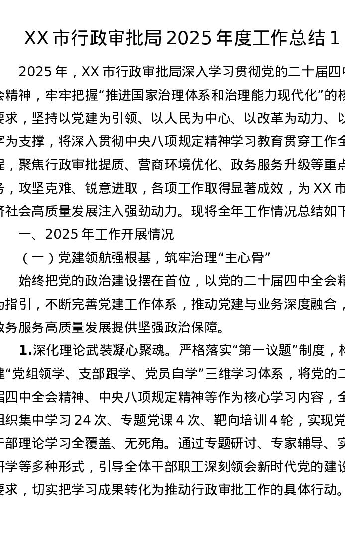 XX市行政审批局2025年度工作总结1