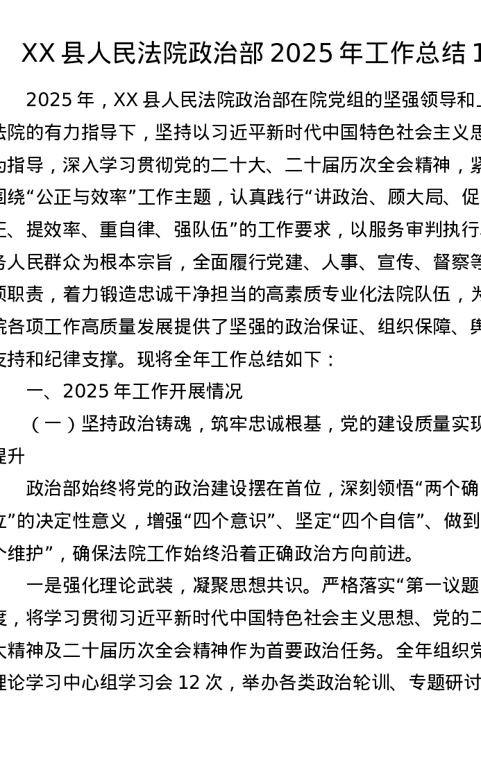 XX县人民法院政治部2025年工作总结1