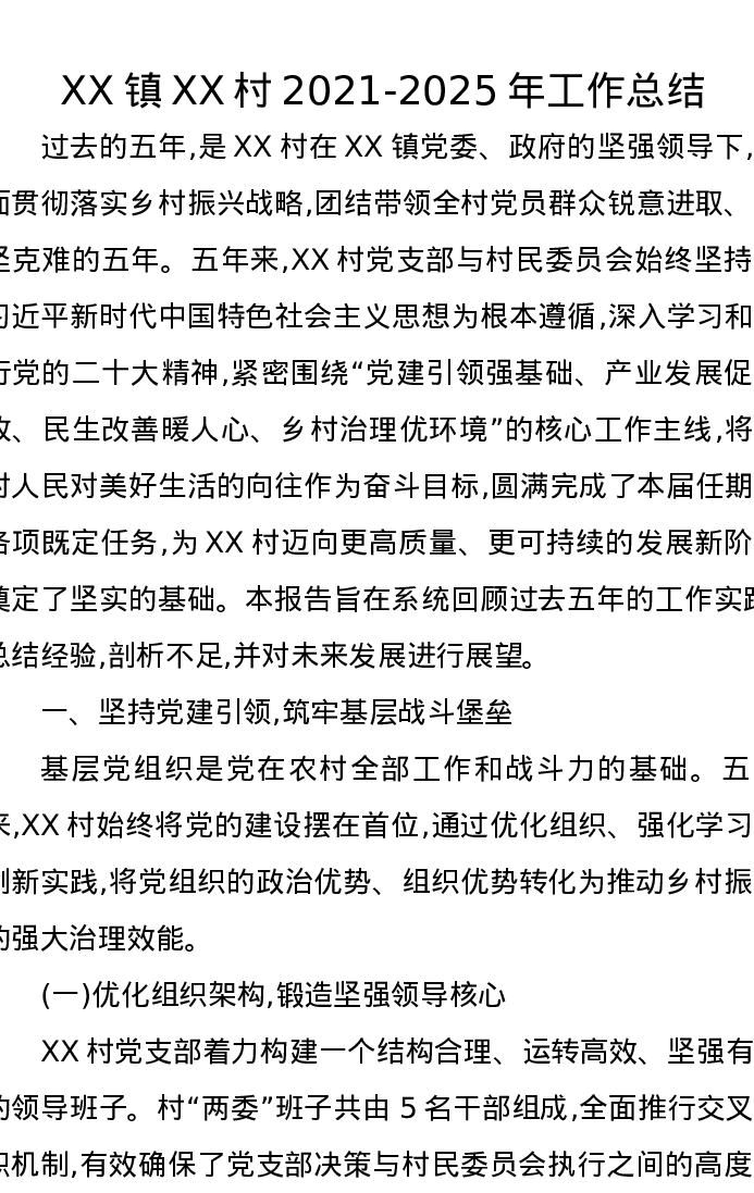 XX镇XX村2021-2025年工作总结