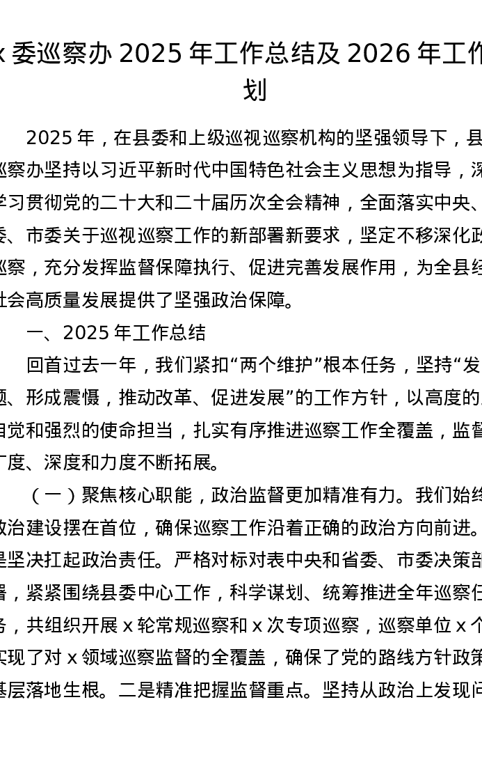 x委巡察办2025年工作总结及2026年工作计划