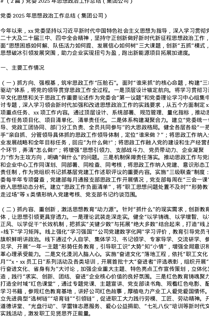 汇编:党委2025年思想政治工作总结(集团公司)2篇