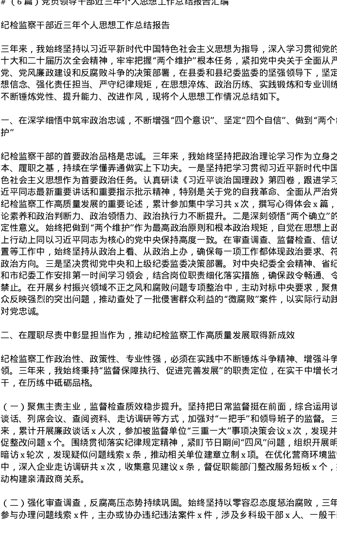 汇编:党员领导干部近三年个人思想工作总结报告6篇