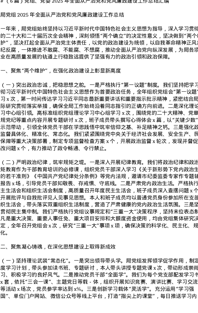 汇编:党组、党委2025年全面从严治党和党风廉政建设工作总结6篇