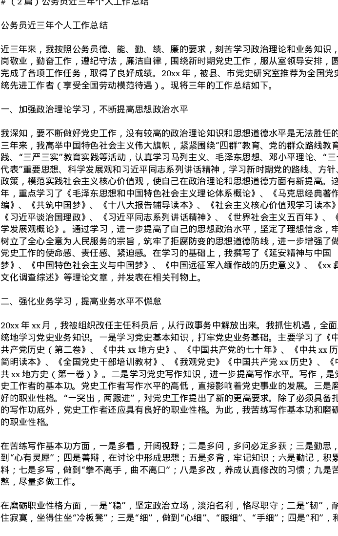 汇编:公务员近三年个人工作总结2篇