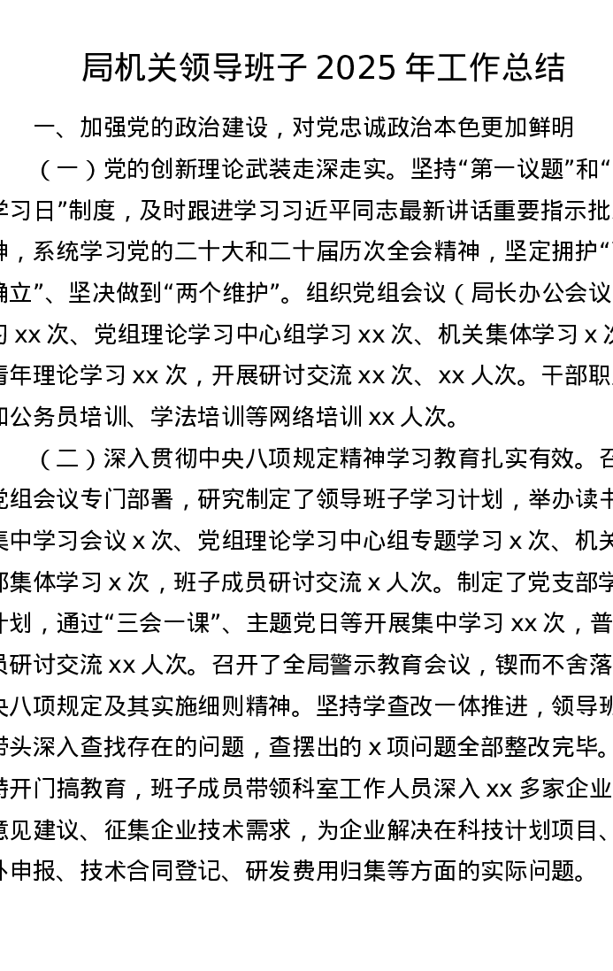 局机关领导班子2025年工作总结