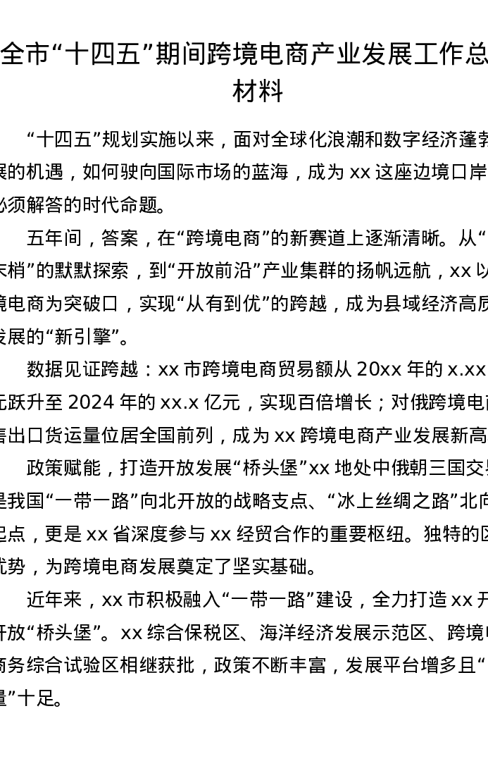 全市十四五期间跨境电商产业发展工作总结材料
