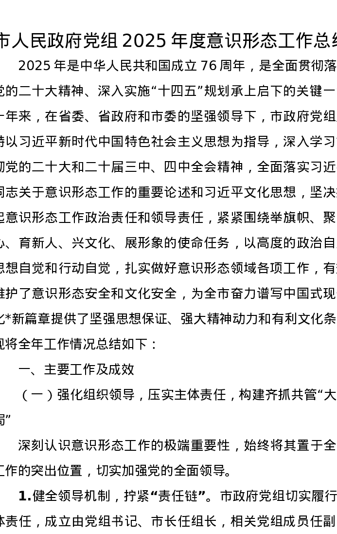市人民政府党组2025年度意识形态工作总结