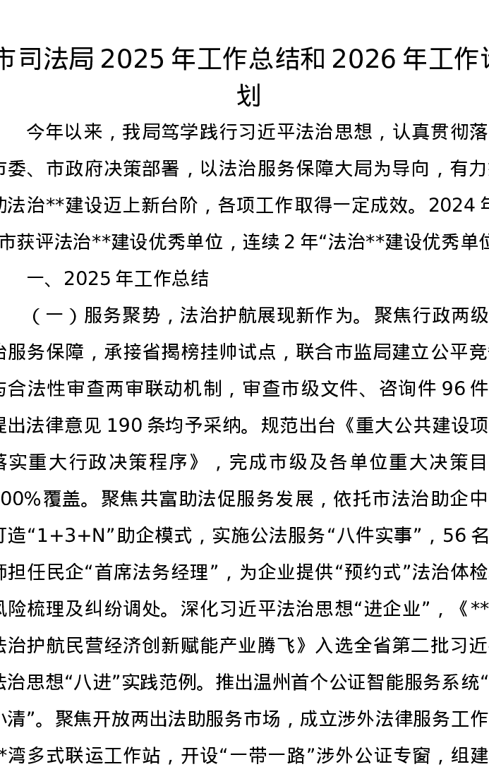 市司法局2025年工作总结和2026年工作计划