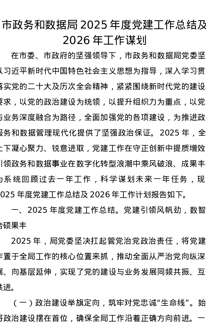 市政务和数据局2025年度党建工作总结及2026年工作谋划
