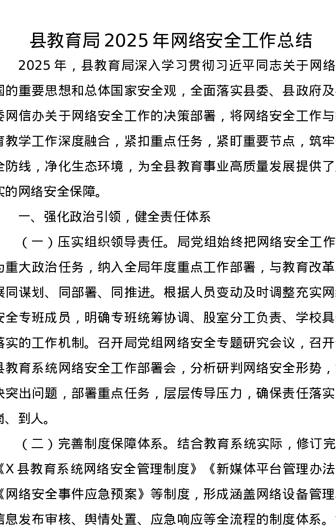 县教育局2025年网络安全工作总结