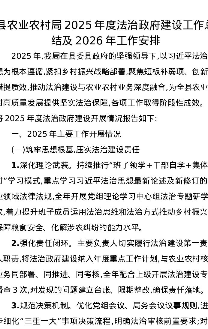 县农业农村局2025年度法治政府建设工作总结及2026年工作安排