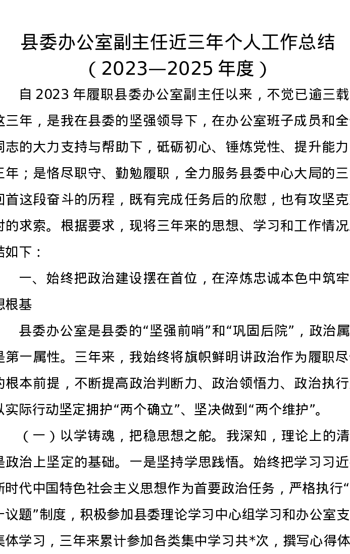 县委办公室副主任近三年个人工作总结(2023—2025年度)