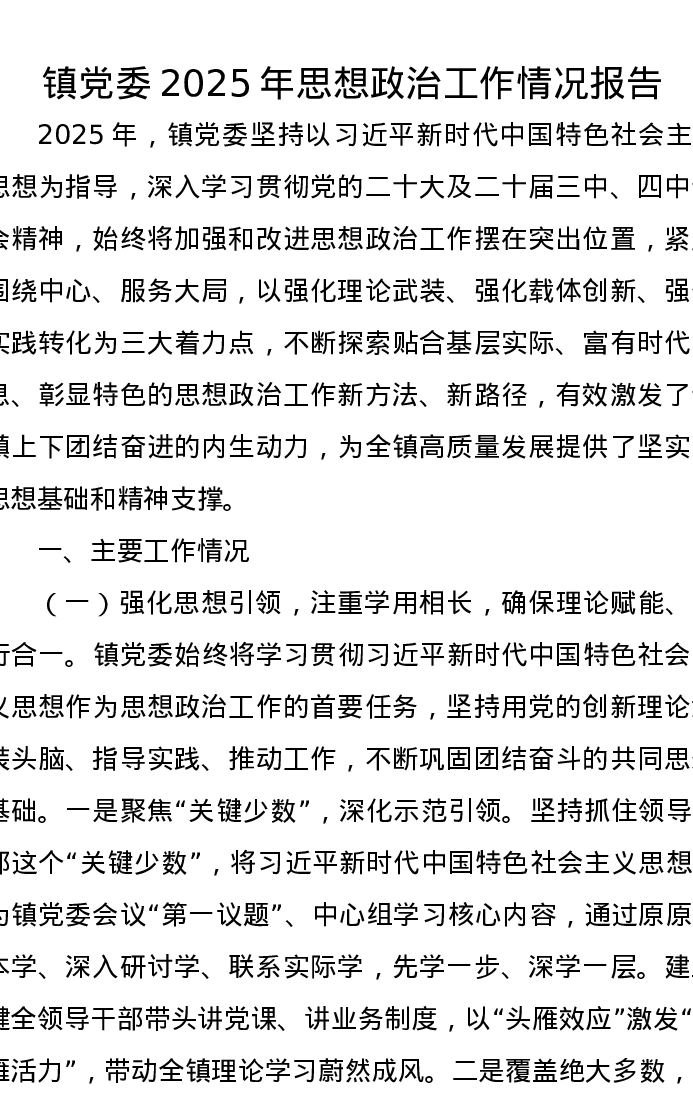 镇党委2025年思想政治工作情况报告