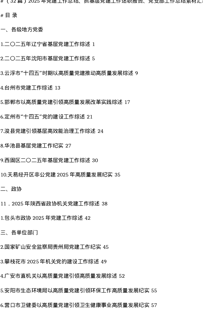 汇编:2025年党建工作总结、抓基层党建工作述职报告、党支部工作总结素材32篇