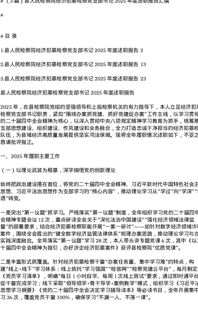 汇编:县人民检察院经济犯罪检察党支部书记2025年度述职报告3篇