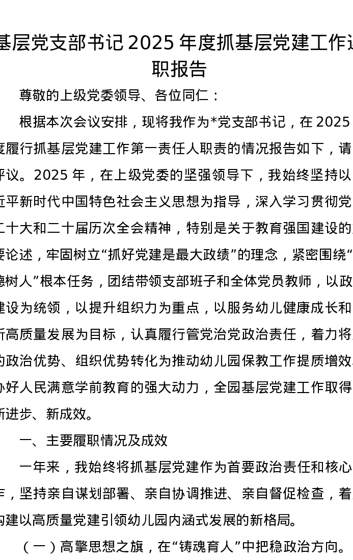 基层党支部书记2025年度抓基层党建工作述职报告