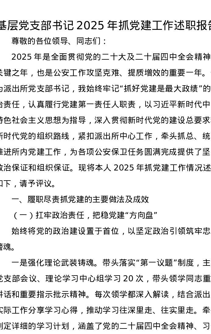 基层党支部书记2025年抓党建工作述职报告