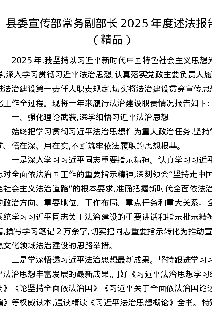 县委宣传部常务副部长2025年度述法报告