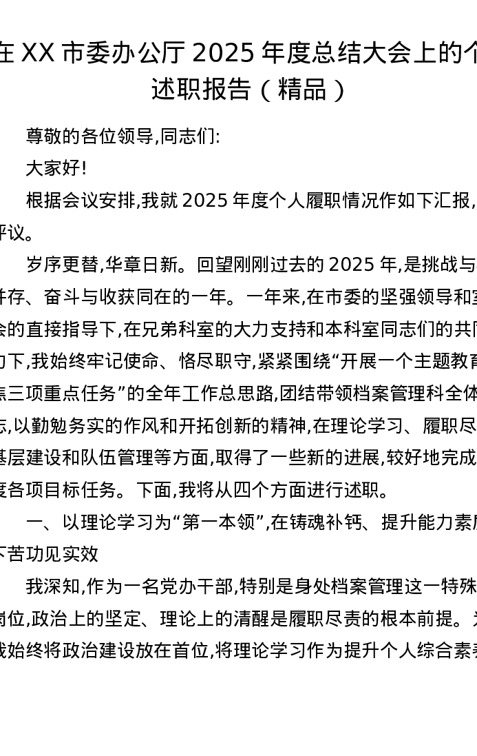在XX市委办公厅2025年度总结大会上的个人述职报告