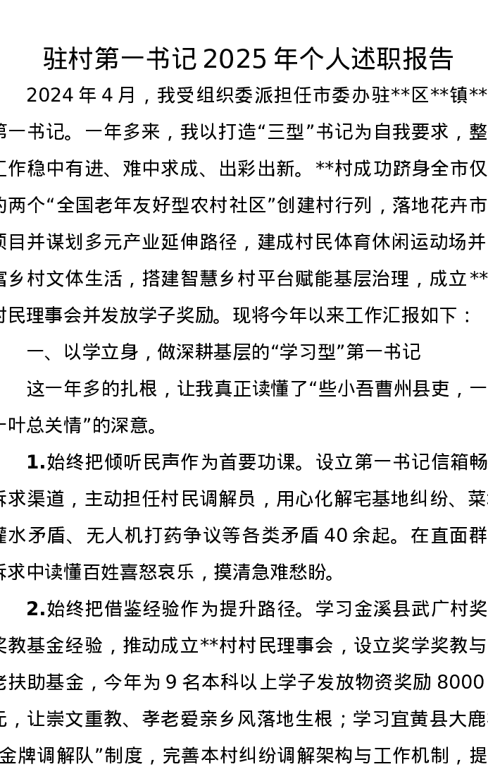 驻村第一书记2025年个人述职报告