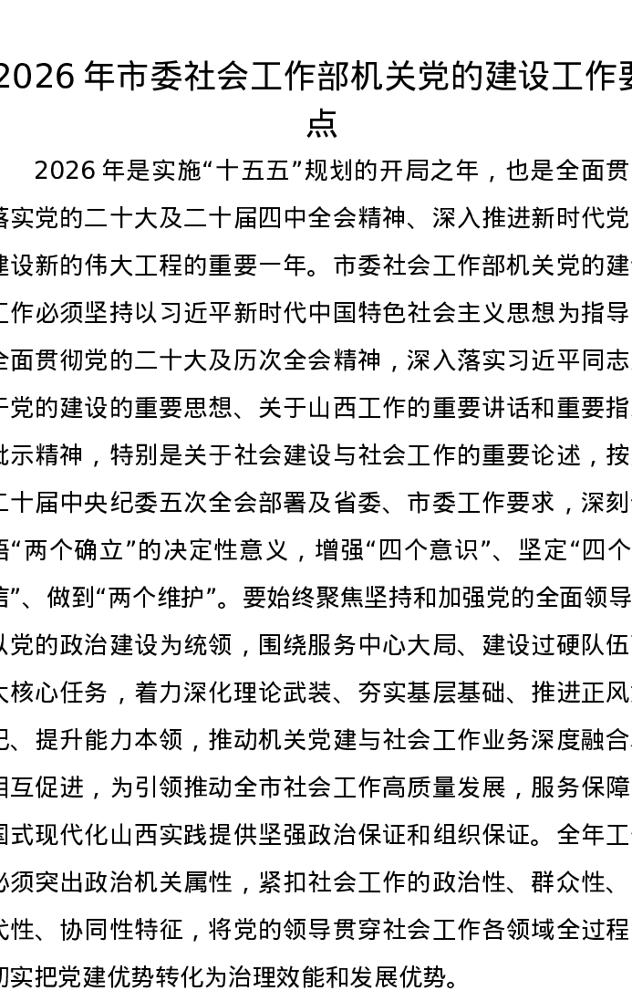 2026年市委社会工作部机关党的建设工作要点