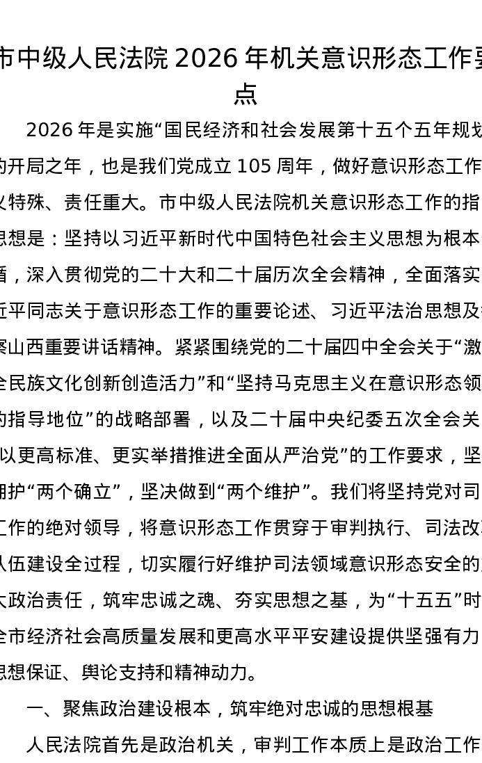 市中级人民法院2026年机关意识形态工作要点