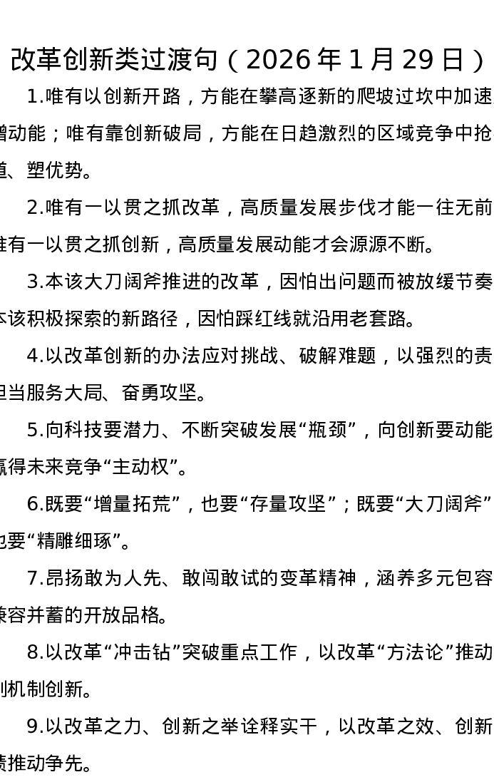 改革创新类过渡句(2026年1月29日)