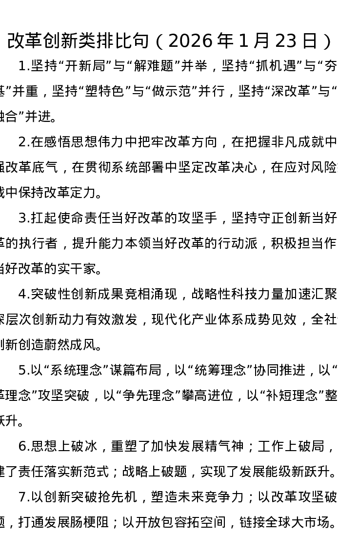 改革创新类排比句(2026年1月23日)