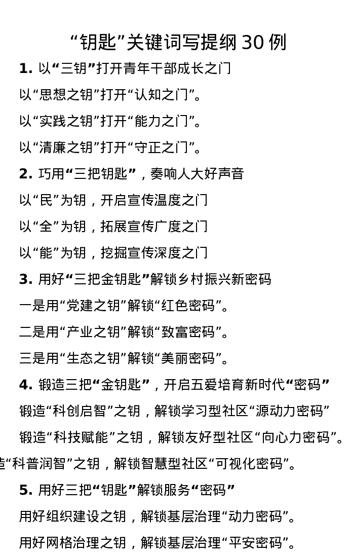 钥匙关键词写提纲30例