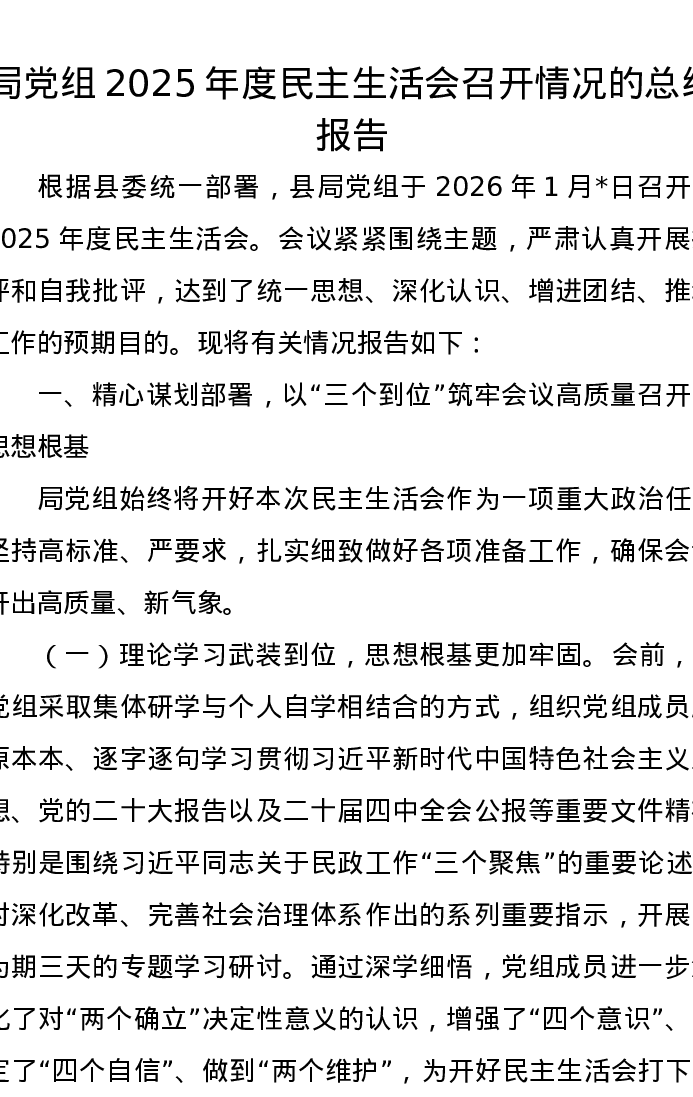 局党组2025年度xxxxx召开情况的总结报告