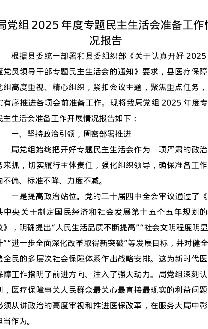 局党组2025年度专题xxxxx准备工作情况报告