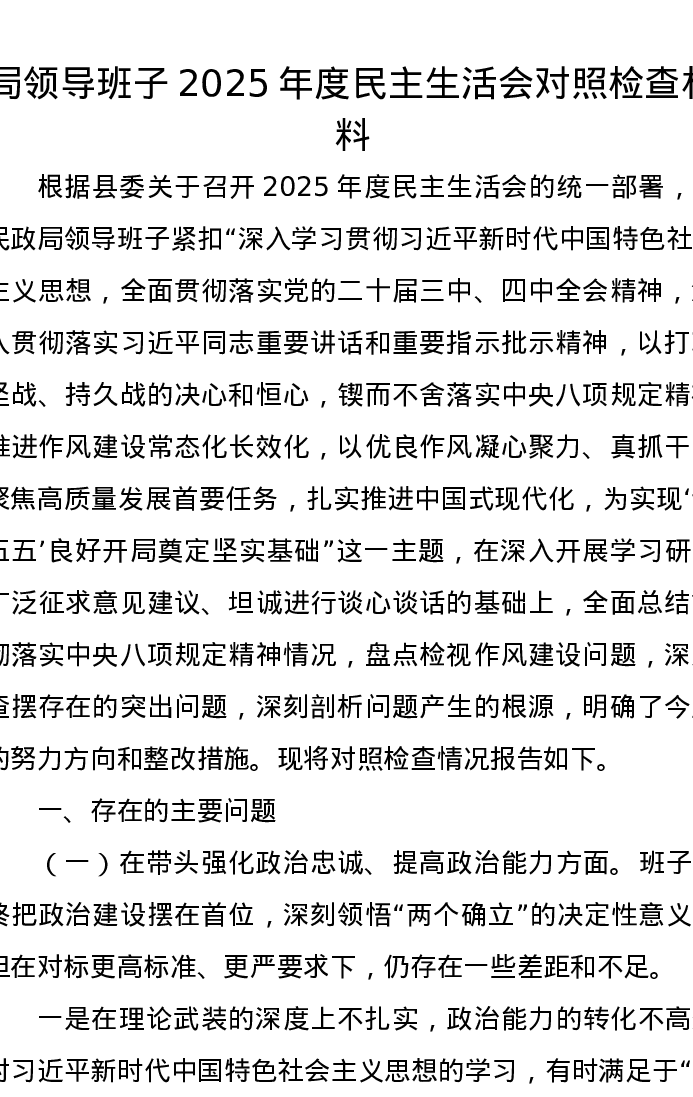 局领导班子2025年度xxxxx对照检查材料